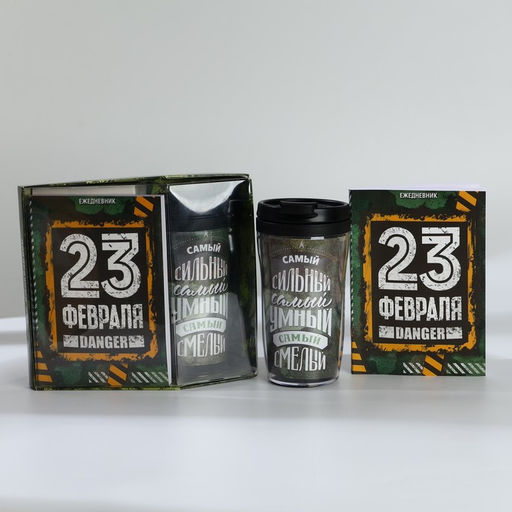Подарочный набор: ежедневник А6 80 листов и термостакан 250 мл Самому сильному. 23 февраля
