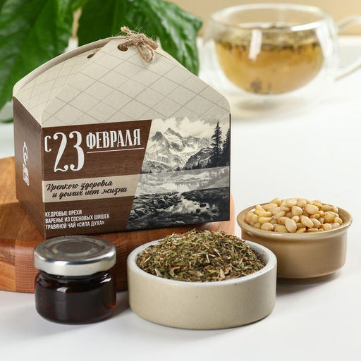 Подарочный набор 23 февраля кедровый орех 30 г, варенье 30 г, чай 20 г