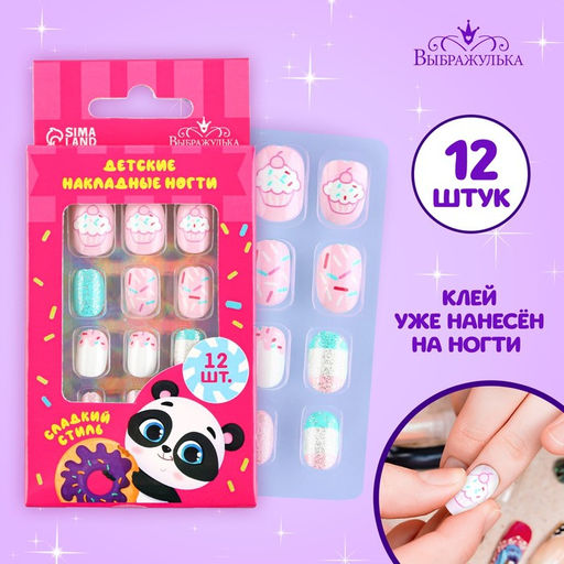 Детские накладные ногти Сладкий стиль, 12 шт.