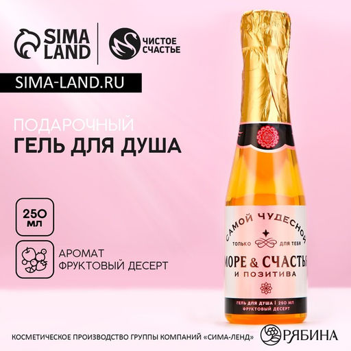 Гель для душа шампанское Море счастья, 250 мл, аромат фруктового десерта, Чистое счастье