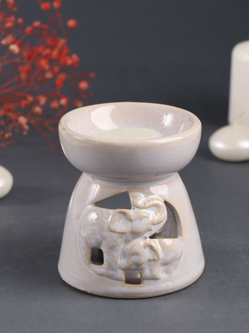Набор: аромалампа для эфирных масел, мелтс из воска ароматический Слон со слонёнком, светлый беж, 10?10?9 см