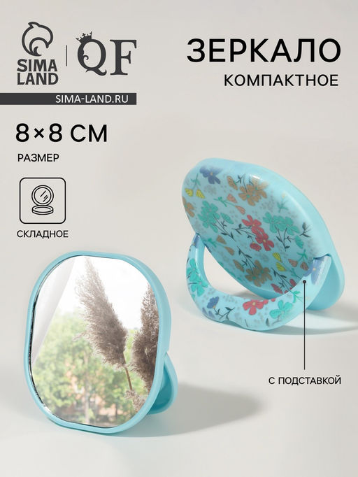 Зеркало карманное Узор, с подставкой, 8?8 см, голубое
