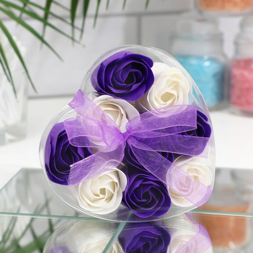 Мыльные розы, фиолетовые и белые, набор 9 шт.