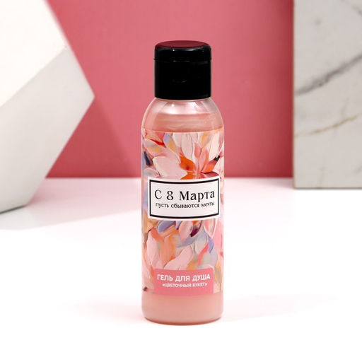 Цена за 2 шт. Гель для душа С 8 Марта!, 100 мл, аромат цветочного букета, Чистое счастье