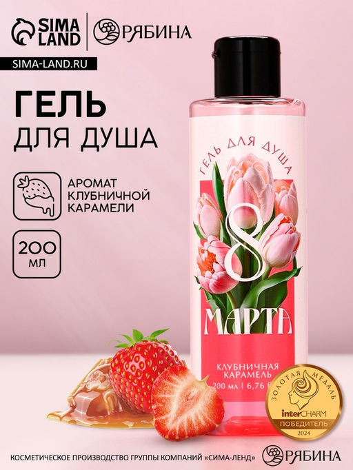 Гель для душа С 8 Марта!, 200 мл, аромат клубничной карамели, Чистое счастье