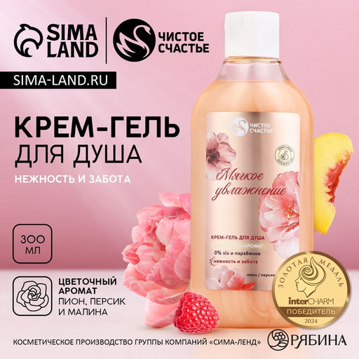 Гель для душа Мягкое увлажнение, 300 мл, аромат цветов, Чистое счастье