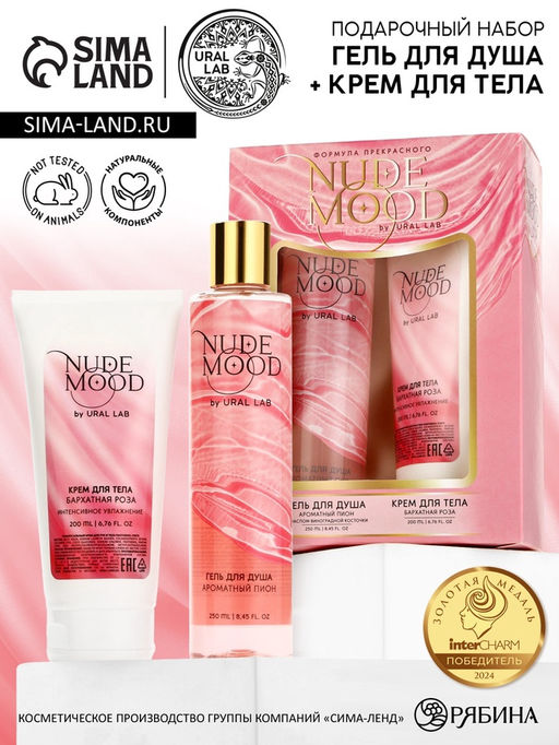 Подарочный набор NUDE MOOD, гель для душа 250 мл и крем для тела 200 мл, аромат пиона и розы, URAL LAB