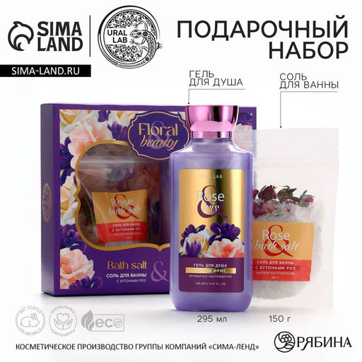 Подарочный набор URAL LAB, гель для душа 295 мл и соль для ванны с бутонами роз 150 г