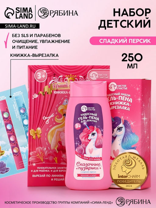 Подарочный набор детский Сказочные пузырьки, гель-пена 250 мл, книжка-вырезалка А5, Чистое счастье