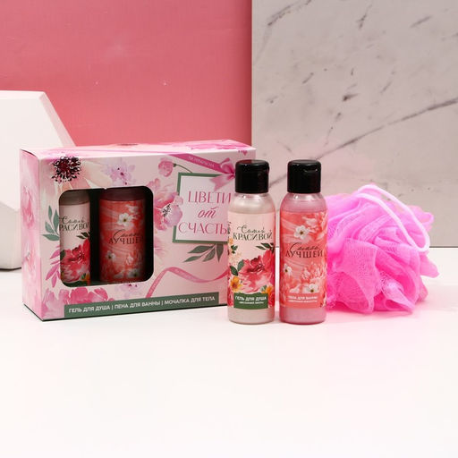 Подарочный набор Цвети от счастья, гель для душа и пена для ванны 2?100 мл, мочалка для тела, Чистое счастье