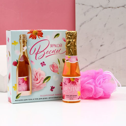 Подарочный набор Яркой весны!, гель для душа шампанское 250 мл и мочалка для тела, Чистое счастье