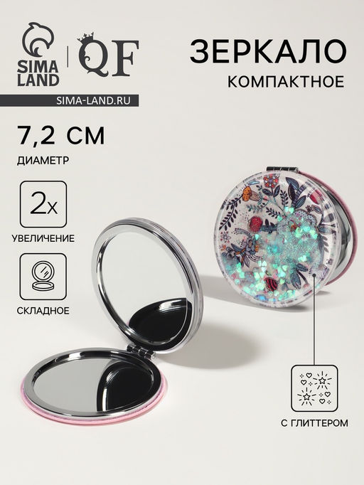 Цена за 2 шт. Зеркало складное Цветы, d=7.2 см, с увеличением х2, белое, фиолетовое