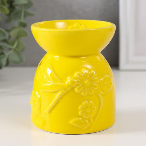 Аромалампа для эфирных масел Стрекоза на цветке, керамика, жёлтая, 7.2?7.2?8.3 см