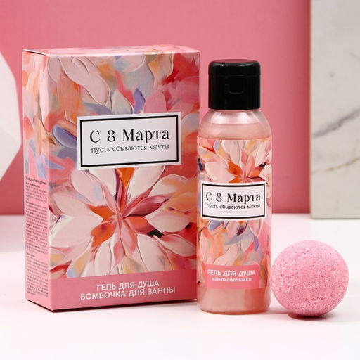 Подарочный набор 8 Марта!, гель для душа 100 мл и бомбочка для ванны 40 г, Чистое счастье