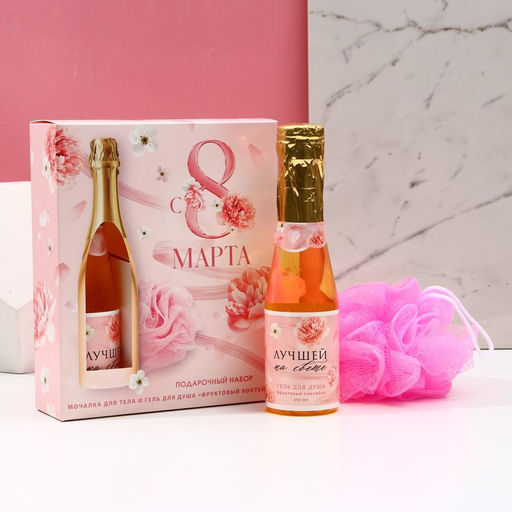 Подарочный набор С 8 Марта!, гель для душа шампанское 250 мл и мочалка для тела, Чистое счастье