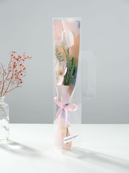 Букет из мыльных лепестков для ванны Тюльпан с орхидеей, подарочный, нежно-розовый, 8.5?7.4?38.6 см