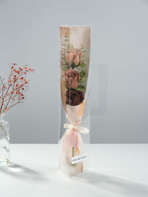 Букет из мыльных лепестков для ванны Три розы с эвкалиптом, подарочный, бежевый, 8.5?7.4?38.6 см