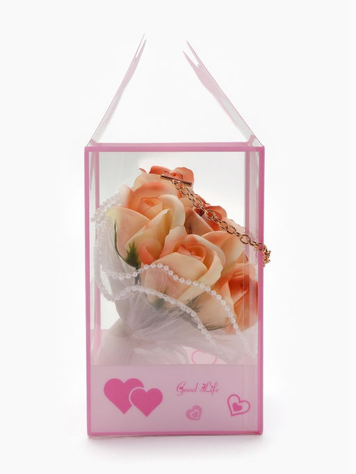 Набор из 6 нежных бело-розовых мыльных роз
