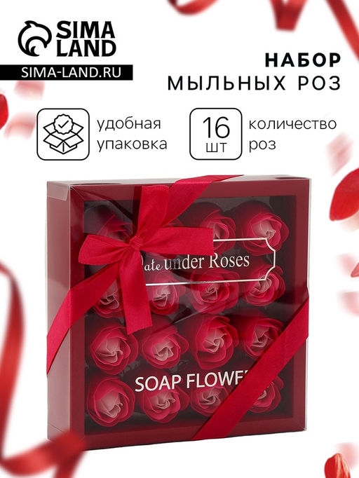 Набор мыльных роз в коробке 16 штук, розово-белые