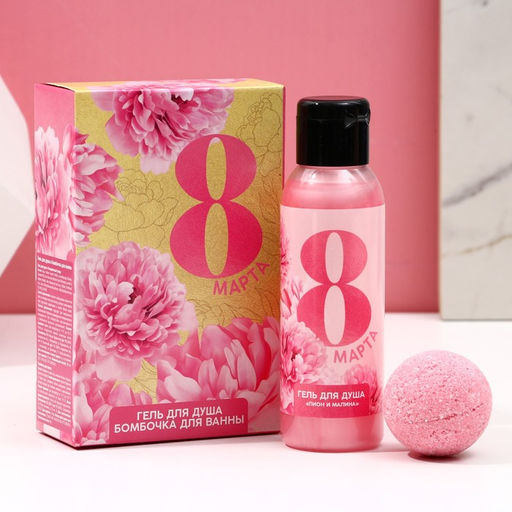 Подарочный набор С 8 Марта!, гель для душа 100 мл и бомбочка для ванны 40 г, Чистое счастье