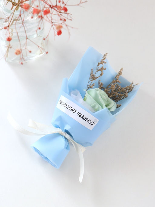 Букет из мыльных лепестков для ванны Роза подарочная в коробке, подарочный, голубой, 8.6?8.6?18.5 см