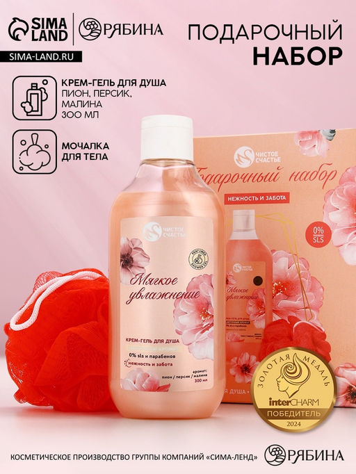 Подарочный набор Нежность и забота, гель для душа 300 мл и мочалка для тела, Чистое счастье