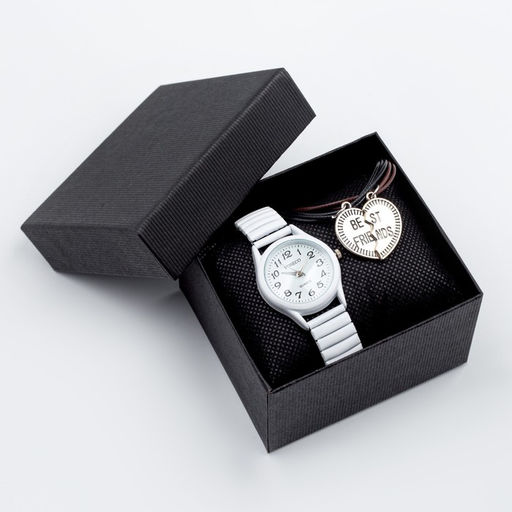 Женский подарочный набор Лентини 2 в 1: наручные кварцевые часы и браслет