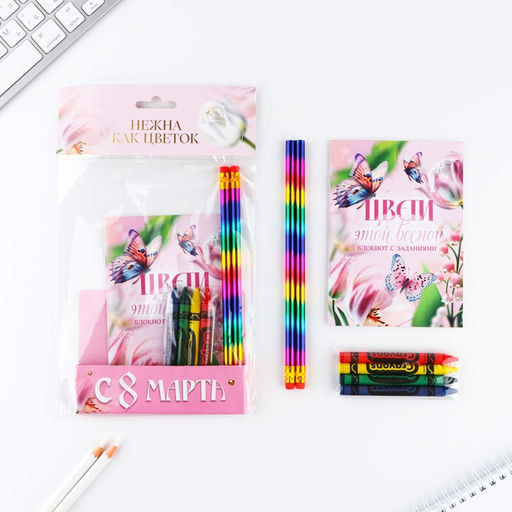Подарочный набор, блокнот А6, карандаши (2 шт.) и восковые мелки (4 шт.) Цвети этой весной