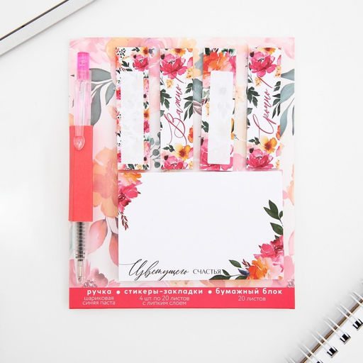 Подарочный набор, стикеры-закладки и ручка, 20 л в блоке Цветущего счастья
