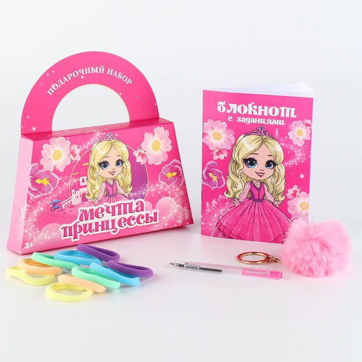 Подарочный набор, в сумке: блокнот, резиночки, брелок, ручка Мечта принцессы