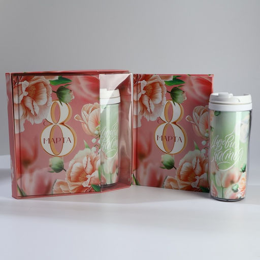 Подарочный набор, ежедневник А5, 80 л. и термостакан 350 мл С 8 марта