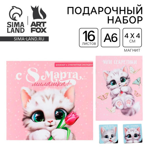 Цена за 2 шт. Подарочный набор,: блокнот и магнитные закладки 2 шт. Милашка, с 8 марта!