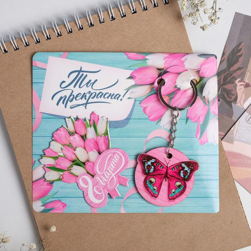 Цена за 2 шт. Магнит на холодильник и брелок Ты прекрасна. 8 Марта, набор 2 предмета