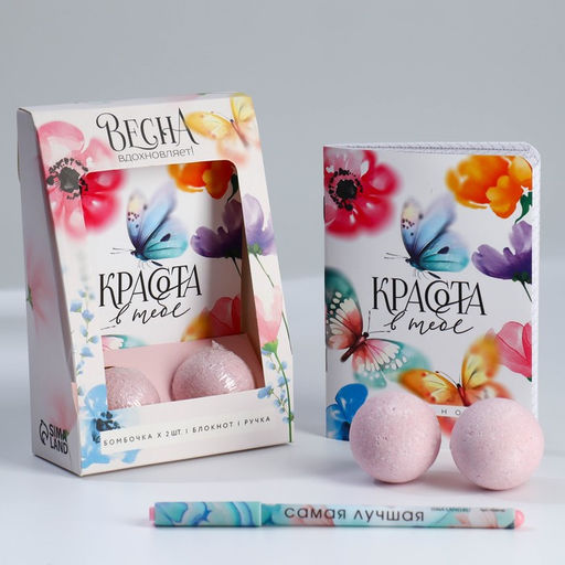 Подарочный набор, блокнот А6.32 листа, ручка, бурлящий шар 40 г (2 шт.) Красота в тебе