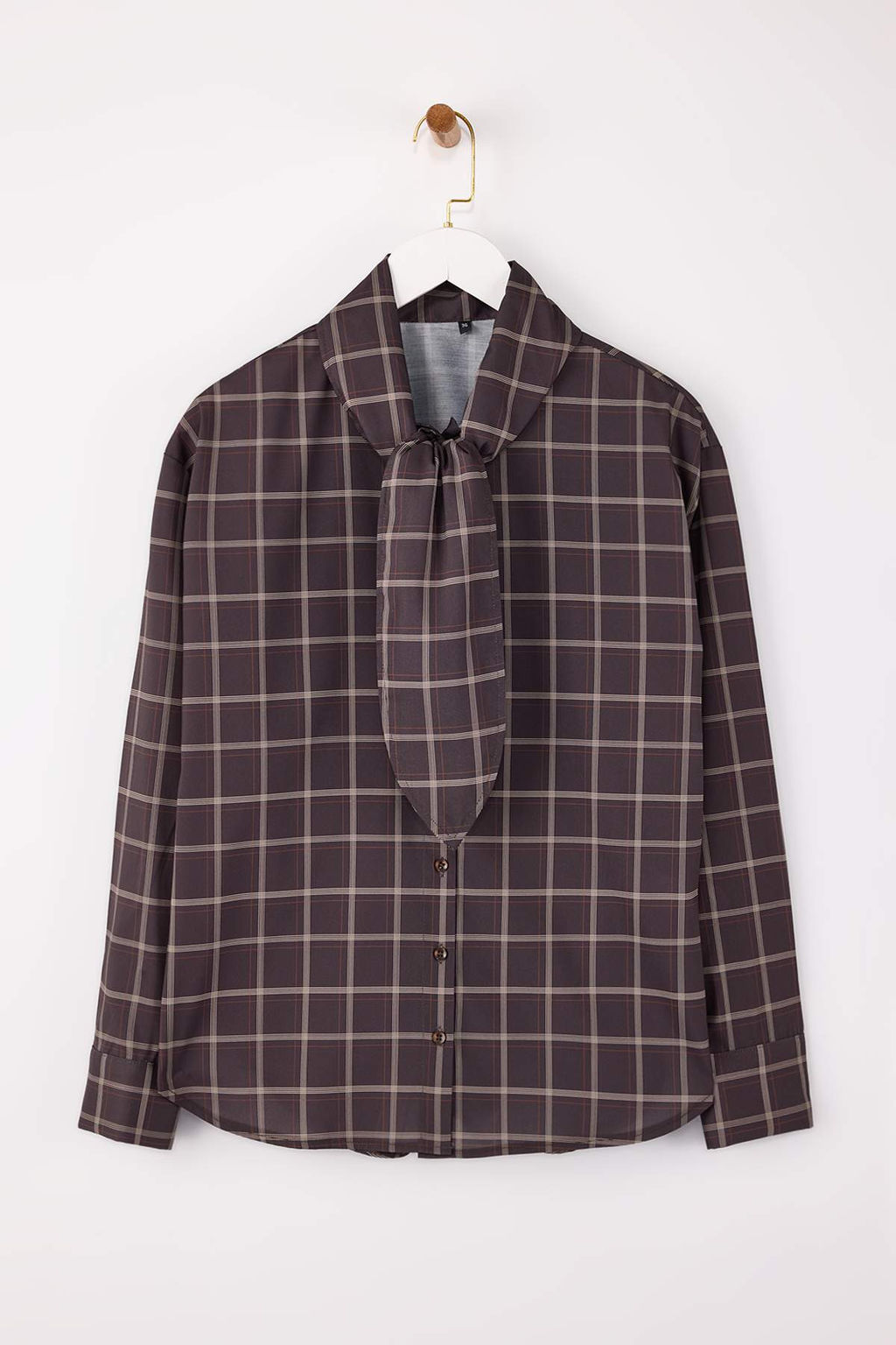 Cok Renkli-Kahverengi Ekose Fular Detayl? Oversize/Genis Kal?p Gomlek TWOSS26GO00009