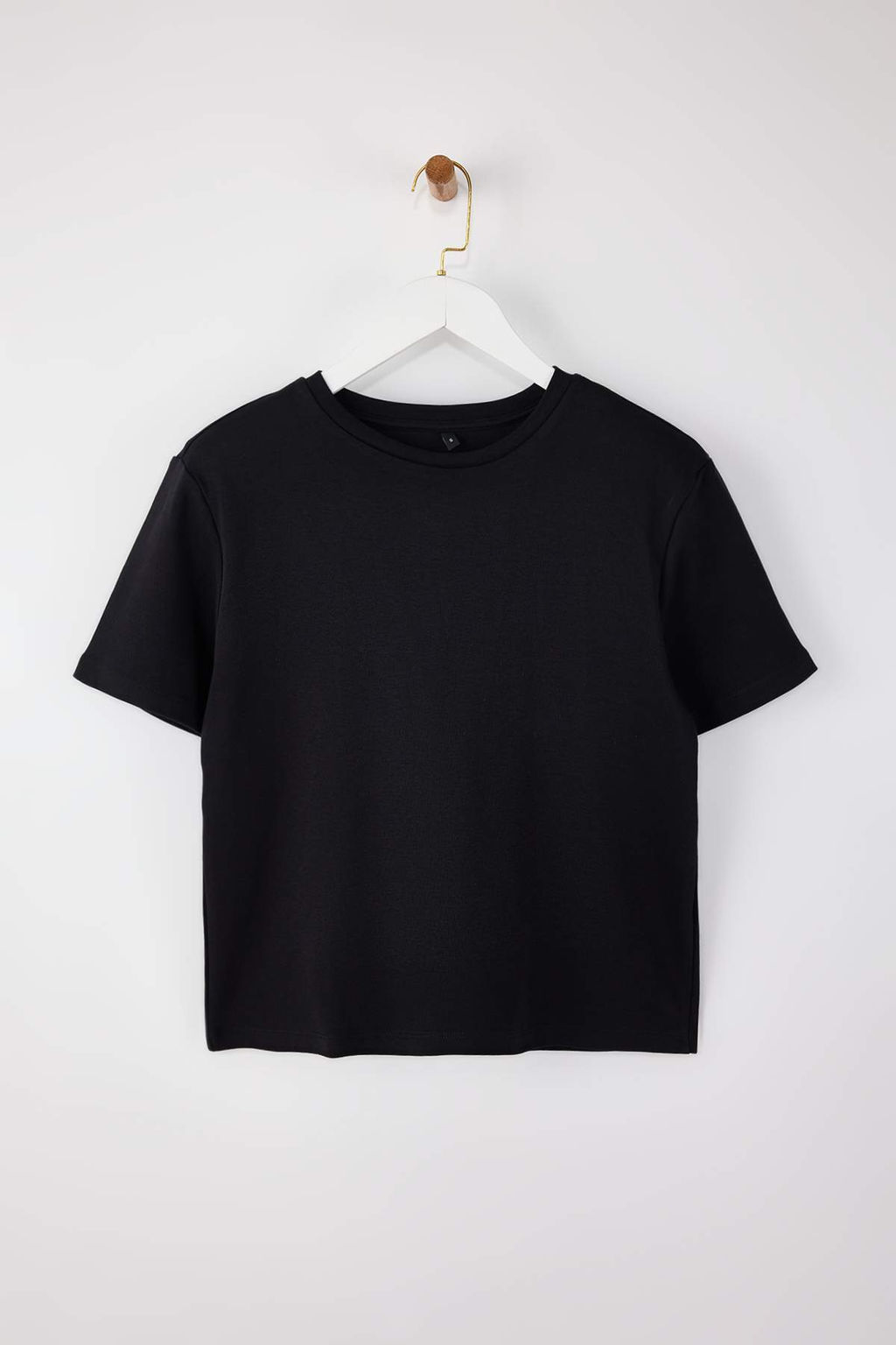 Siyah Regular/Normal Kal?p K?sa Kollu Vatkal? Interlok Orme T-Shirt TWOSS26TS00005
