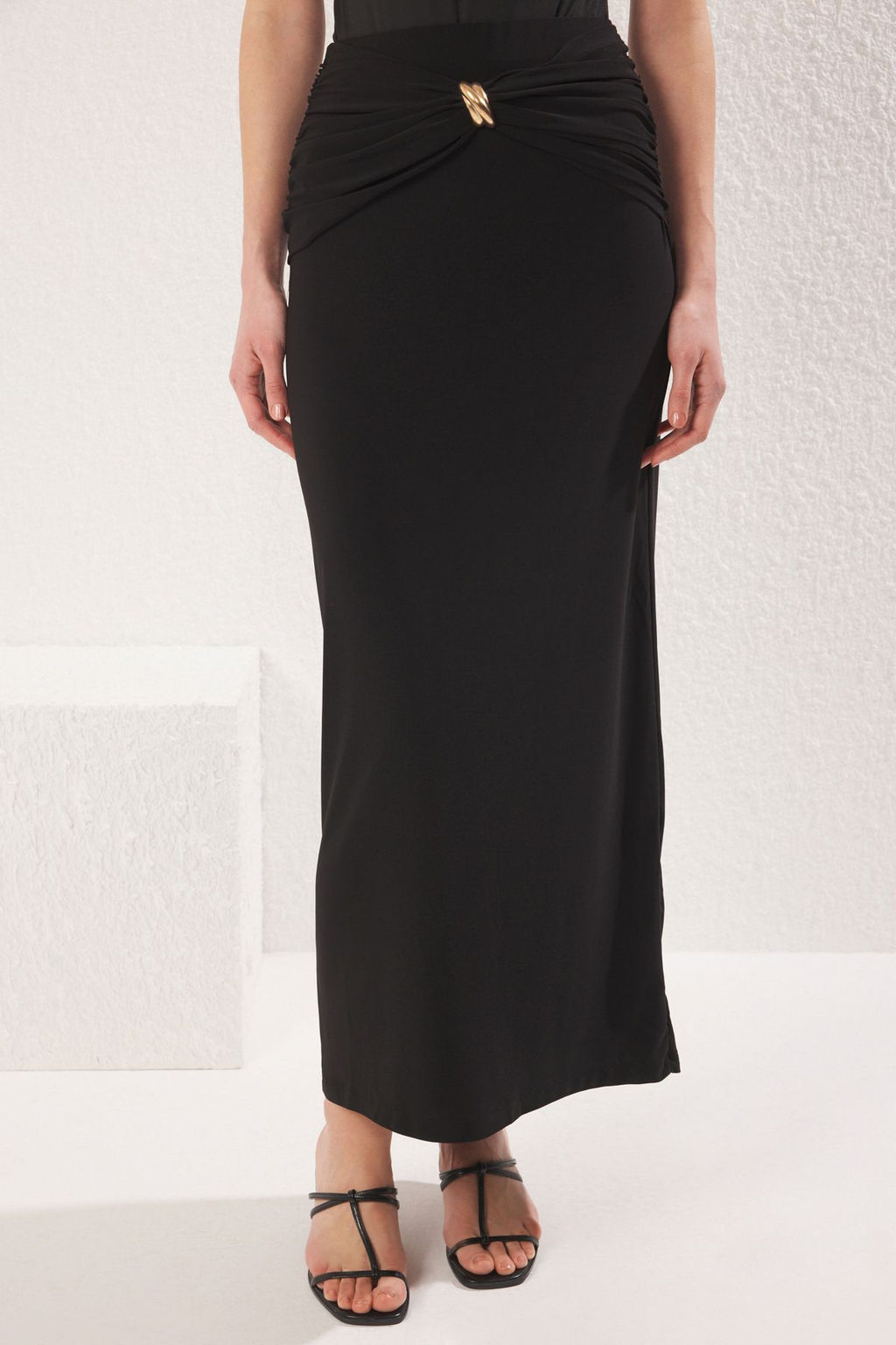Siyah Gold Aksesuar Detayl? Esnek Maxi Orme Bal?k Etek TWOSS25ET00110