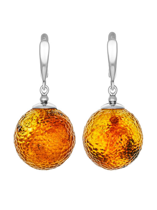 Необычные объёмные серьги-шары Марс с кусаным янтарём