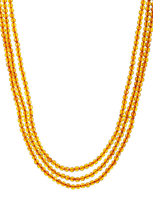 Колье из натурального гранёного янтаря Карамель золотистая трёхрядная