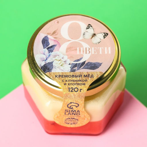 Мёд кремовый 8 марта с клубникой и хлопком, 120 г