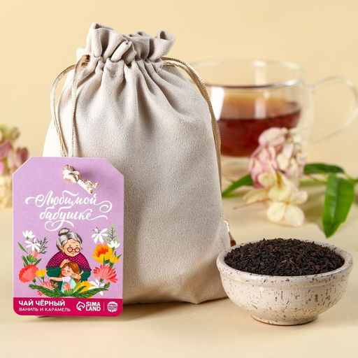 Чай подарочный Любимой бабушке в подарочном мешочке, вкус: ваниль и карамель, 100 г