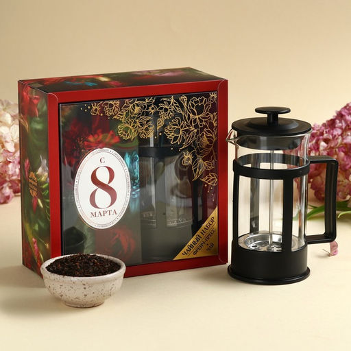 Подарочный набор С 8 марта: чай чёрный со вкусом мяты 100 г, френч-пресс