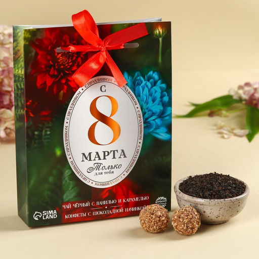 Подарочный набор 8 марта чай 50 г, конфеты 100 г