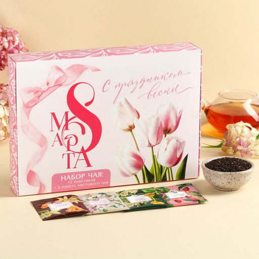 Чай подарочный С праздником весны. 8 Марта, весовой чай 40 г (2 шт.?20 г)., чай в пакетиках 21.6 (12 шт.?1.8 г).