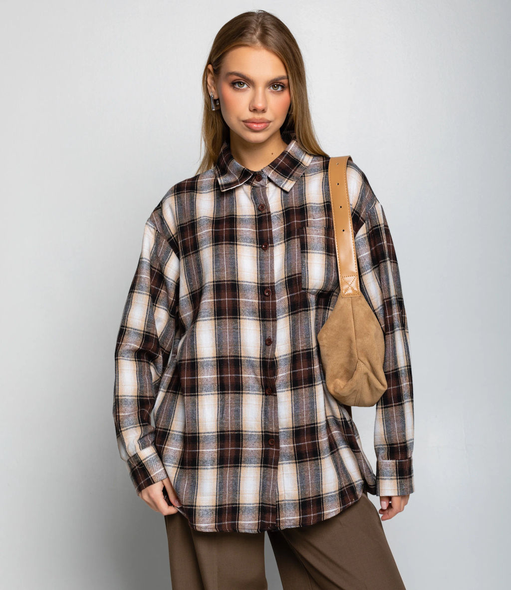 Артикул: Рубашка #КТ225 (5), коричневый,белый