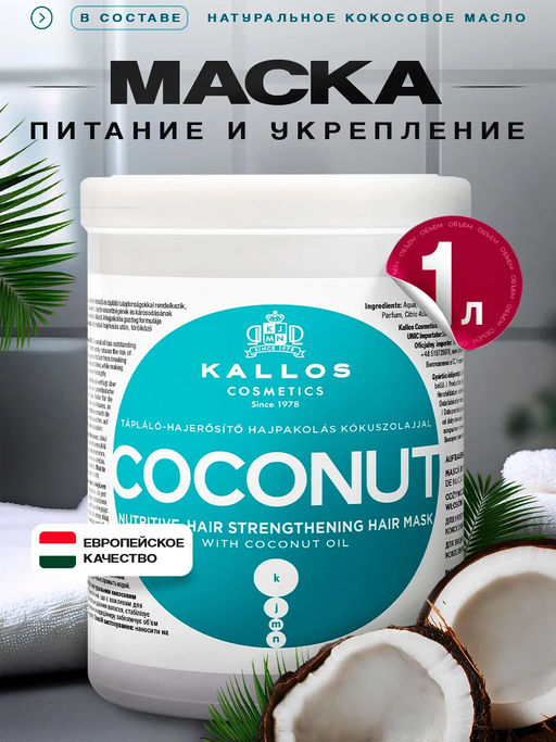 Kallos Маска Coconut для укрепления слабых и поврежденных волос с натуральным кокосовым маслом, 1 литр