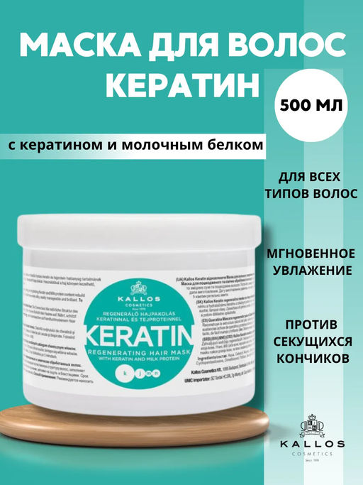 Маска Keratin увлажняющая для сухих волос с кератином и экстрактом молочного протеина 500 мл