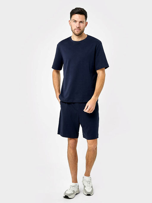 Комплект хлопковый мужской (футболка, шорты) в темно-синем цвете