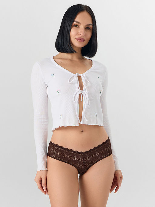 Цена за 2 штуки! Трусы слипы женские коричневые кружевные
