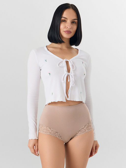 Цена за 2 штуки! Трусы женские макси бежевые с кружевными деталями